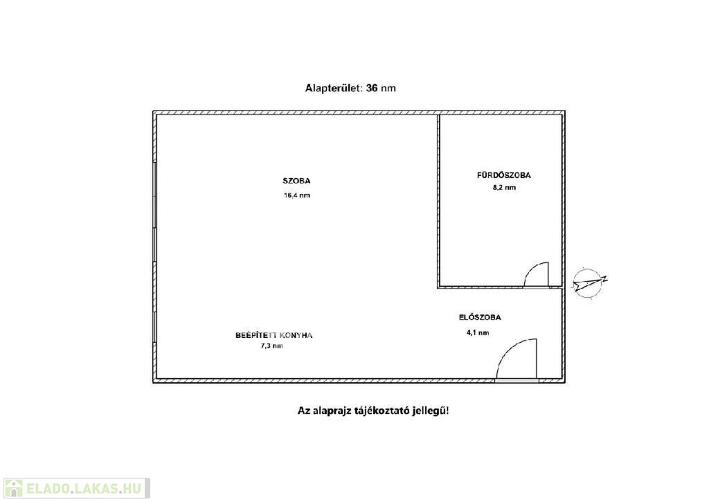 Nappali, előszoba, fürdőszoba, valamint konyha áll rendelkezésre a kiváló elrendezésű lakásban.