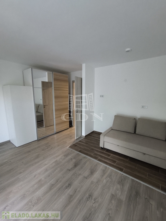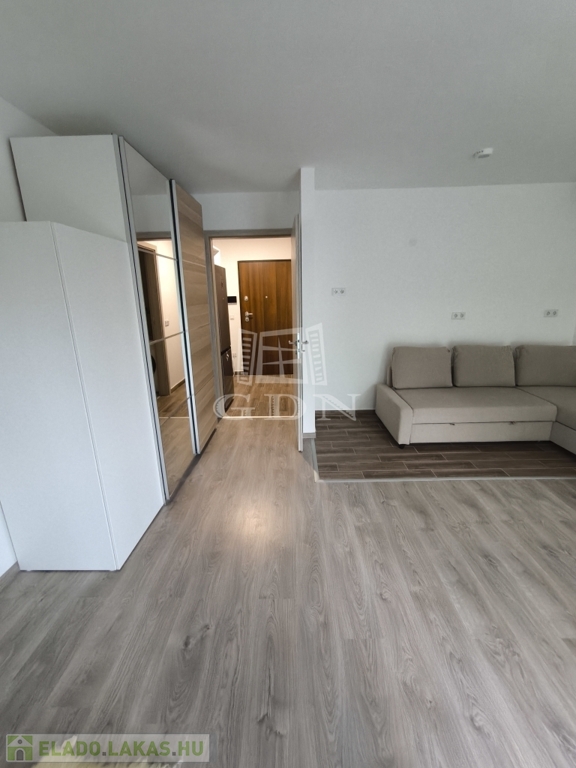 A 33 négyzetméteres ingatlan a második emeleten helyezkedik el. Egy szobával rendelkezik, melybe a konyhai beépítés is előkészített.