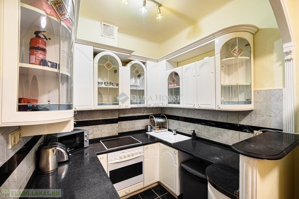 A lakásban jelenleg elektromos fűtés van, de a gáz és a gázóra is bent van az ingatlanban, így a gázcirkó fűtés kiépítése is megoldható. Az ingatlanban található még egy sok tárolási lehetőséget biztosító konyha, beépített konyhabútorral, valamint egy kényelmes méretű WC-s fürdőszoba.