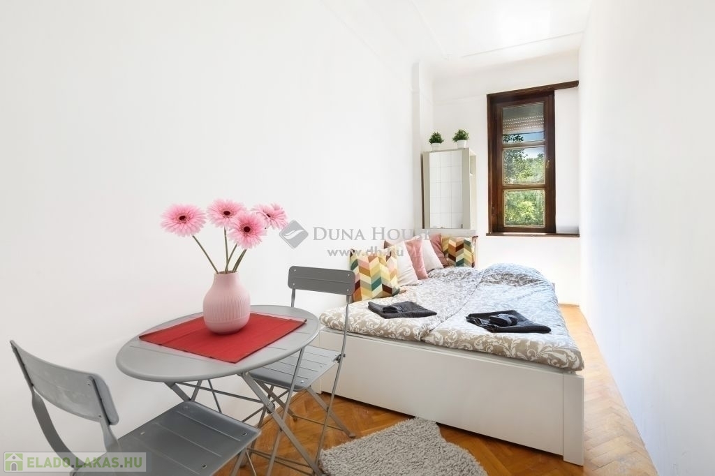 ELADÓ Budapest XI. ker. központi részén, Lágymányoson, csendes mellékutcában, rendezett, jó állapotú, liftes társasház 4. emeletén található, jelenleg szálláshelyként üzemeltetett 60 m2-es ingatlan.