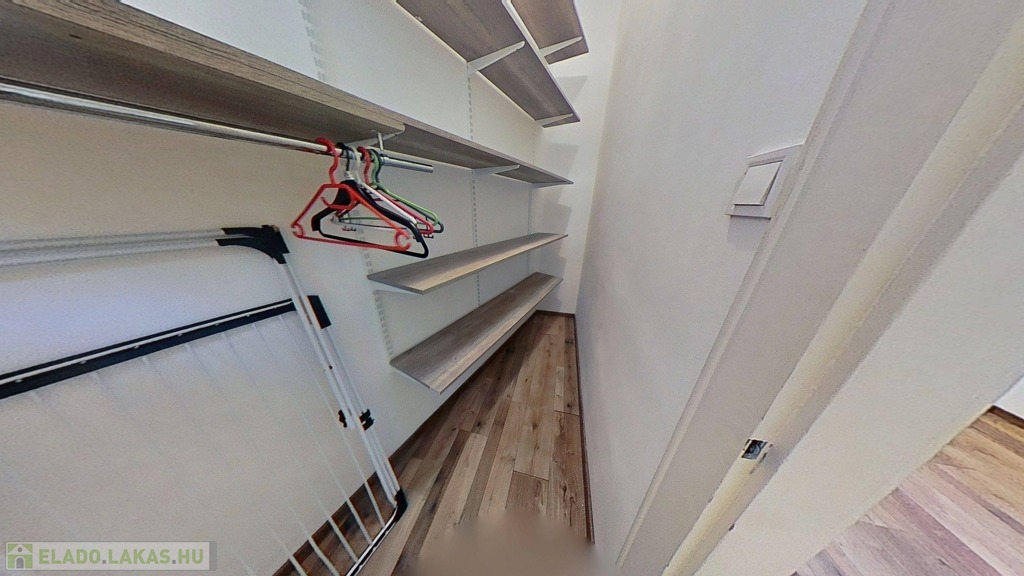 léphetünk. 2 hálószoba van, az egyikből polcrendszerrel ellátott gardrób is nyílik.
