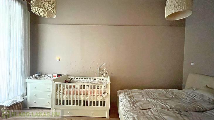 Szomszédságában találjuk az épített zuhanyzóval és mosdóval szerelt fürdőszobát és a külön wc-t.