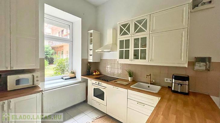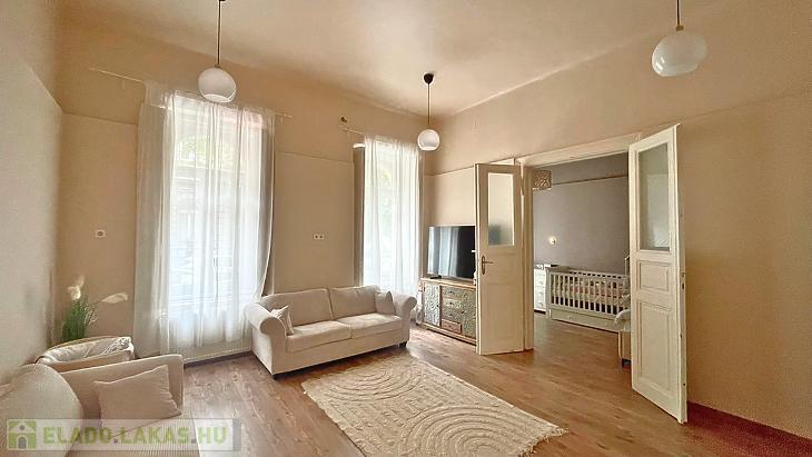 Krisztinaváros egyirányú mellékutcájában, szép állapotú társasházban, nagypolgári stílus jegyeket hordozó jó állapotú, keleti, és nyugati fekvésű lakás eladó.