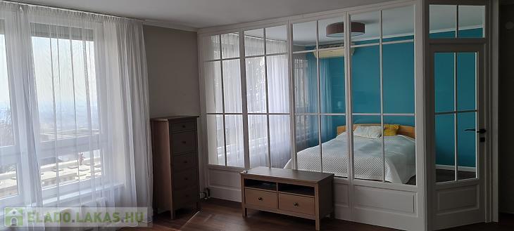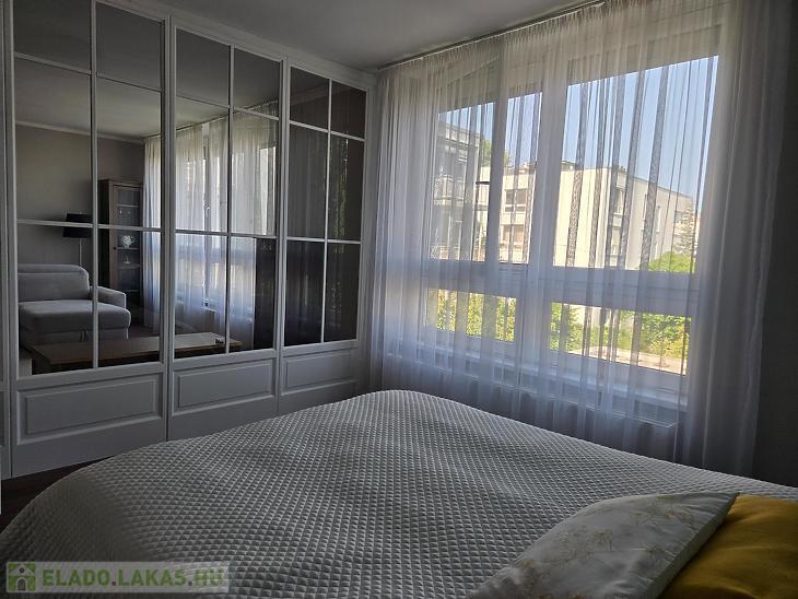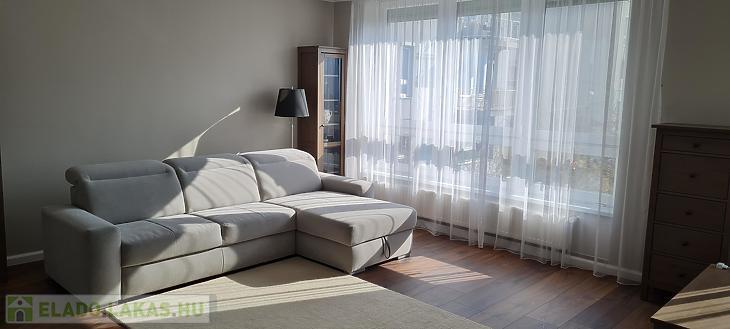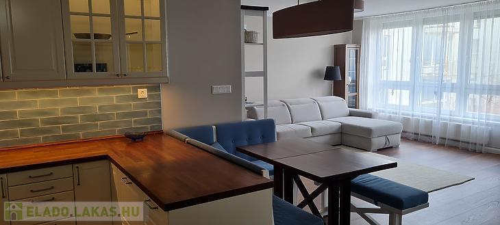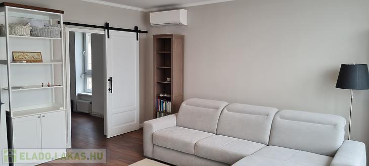 A lakás 64m2 alapterületű teljeskörű felújításon esett át, mind esztétikailag mind műszakilag megújult (fűtés, víz, elektromos hálózat). Az egyedi megjelenés igényes anyagokkal párosul. A téli időszakban a radiátoros fűtés egyedileg szabályozható, távolról is elérhető okos termosztátokkal vezérelt ami az épület új központi kazánházához csatlakozik. A hűtésről klímák gondoskodnak. A nyílászárók motoros redőnyökkel és rovarhálóval felszereltek. Az egyedi konyhabútor Bosch beépített háztartási gépekkel felszerelt. A lakás az épület 3. emeletén található, egyedülálló kilátással a városra. Tároló helyiség a földszinten áll rendelkezésre, kerékpár, babakocsi tároló a bejárat mellett.