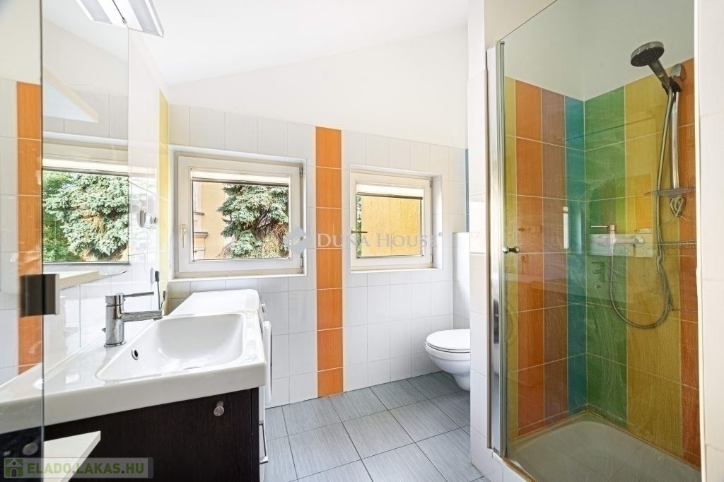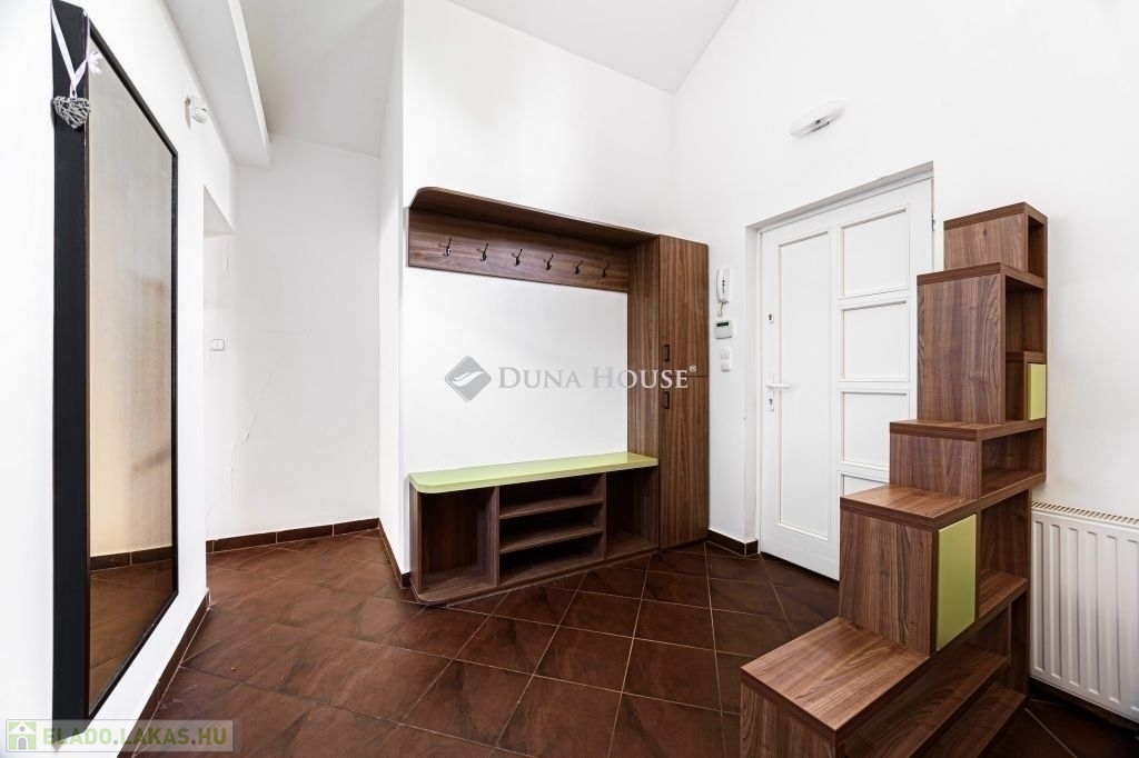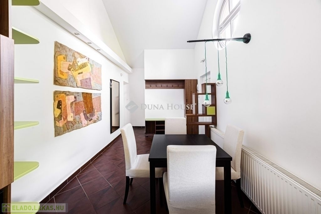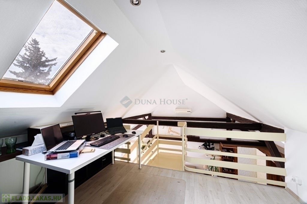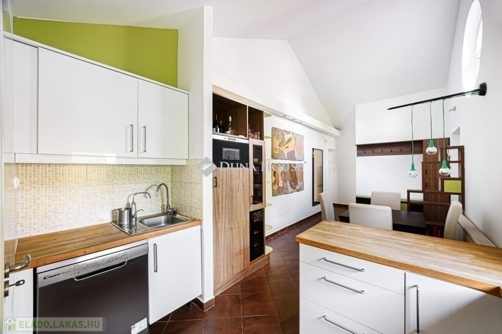 Napsütötte, tágas, teraszos otthon - KissvábhegyenBudapest egyik legkedveltebb, zöldövezeti részén, a XII. kerület Kissvábhegyén, az Ügyész utcában kínálunk megvételre egy különleges hangulatú, 80 m²-es, belső kétszintes lakást, 12 m²-es, napfényben fürdőző, kertre néző saját terasszal.A lakás egy elegáns, háromlakásos villaépület legfelső szintjén helyezkedik el, így teljes intimitást és nyugalmat biztosít tulajdonosának.A lakás különlegességei:- Lélegzetelállító terek és fényár a 4 méteres belmagasság, valamint a rusztikus, látszó gerendás nappali egyedi karaktert kölcsönöz az otthonnak.- Kivételes tárolókapacitás ízlésesen beépített szekrények és tágas gardrób biztosítanak rendszerezett életteret.- Csendes, zöld környezet, mégis kiváló közlekedés a belváros mindössze percek alatt elérhető. (Busz: 21, 39, 102, 210, 212 Villamos: 17, 59, 61 M2 metró: 10 perc séta)A lakás elrendezése:- elegáns előszoba- konyha-étkező + kamra- tágas nappali rusztikus látszógerendákkal, közvetlen teraszkapcsolattal- kényelmes méretű hálószoba, szintén kijárattal a teraszra- stílusos fürdőszoba zuhanykabinnal és WC-el- a galériaszinten egy nyitott, világos dolgozó- vagy vendégszoba, beépített gardrób és extra tárolófelületekA lakás a villa felső szintjén, kb. másfél emelet magasságban található. A hozzá vezető zárható, kizárólagos használatú lépcsőház további biztonságot és extra tárolási lehetőséget kínál.A lakás teljes körű felújításon esett át, és azóta is gondosan karbantartott.Cirkófűtés és klímaberendezés gondoskodik az évszakokhoz illő kényelemről.Külső adottságok:A villa egy 1070 m²-es, ősfás, parkosított telken helyezkedik el. A lakáshoz saját kerthasználat tartozik, ahol homokozó-játszórész, grillterasz, pihenőkert vagy veteményes is kialakítható.A kényelmet saját udvari gépkocsibeálló és külön külső tároló is szolgálja, melyek árát a vételár tartalmazza!!!Ez az ingatlan tökéletes választás azoknak, akik egy napfényes, hangulatos, otthonos lakást keresnek a XII. kerület egyik legjobb részén, ahol a zöld környezet és a városi kényelem találkozik.Ha Ön is egy egyedi atmoszférájú, magas minőségű lakásra vágyik Budapest egyik legkívánatosabb részén, keressen bizalommal a részletekért és a megtekintés egyeztetéséhez!