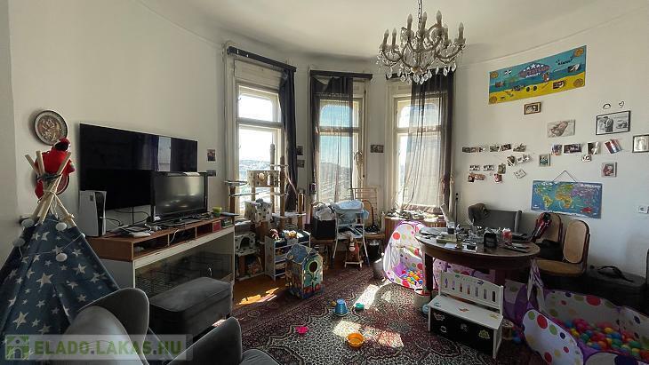 Krisztinavárosban, karbantartott társasházban, magas emeleti, napos, kelet-i és dél-i fekvésű, nagypolgári lakás.