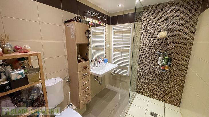 Szomszédságukban találjuk az épített zuhannyal és wc-vel szerelt fürdőszobát és a háztartási helységet, amelyből igény szerint még egy további fürdőszoba is kialakítható.