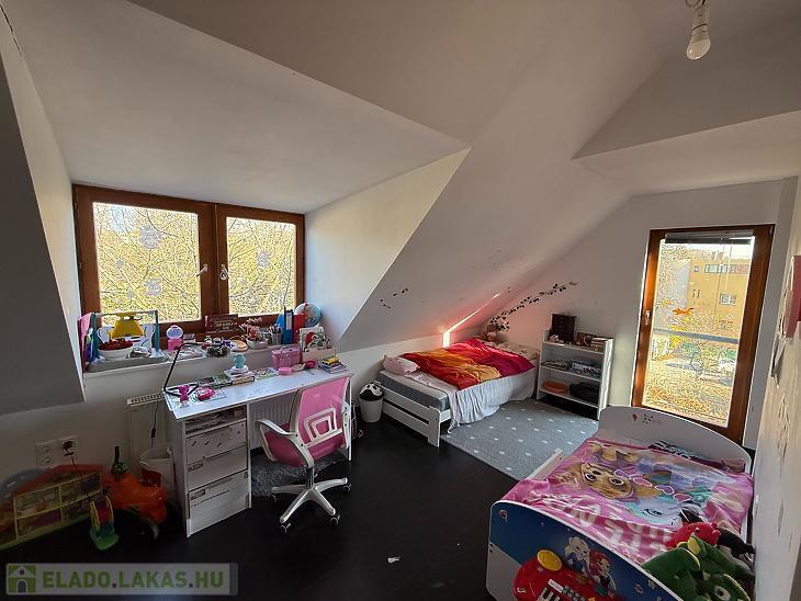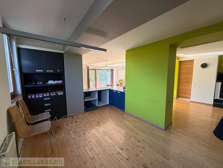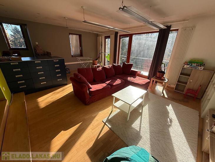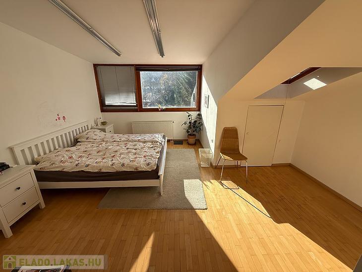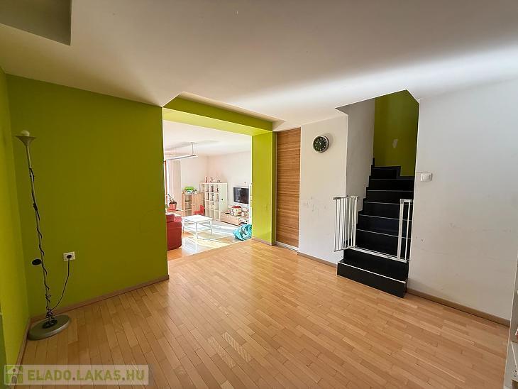 Eladásra kínálunk egy csendes, jó állapotú, nettó 159 nm-es + 15 nm-es teraszos, belső kétszintes, világos, panorámás lakást Németvölgy frekventált részén, a Fürj utcában.