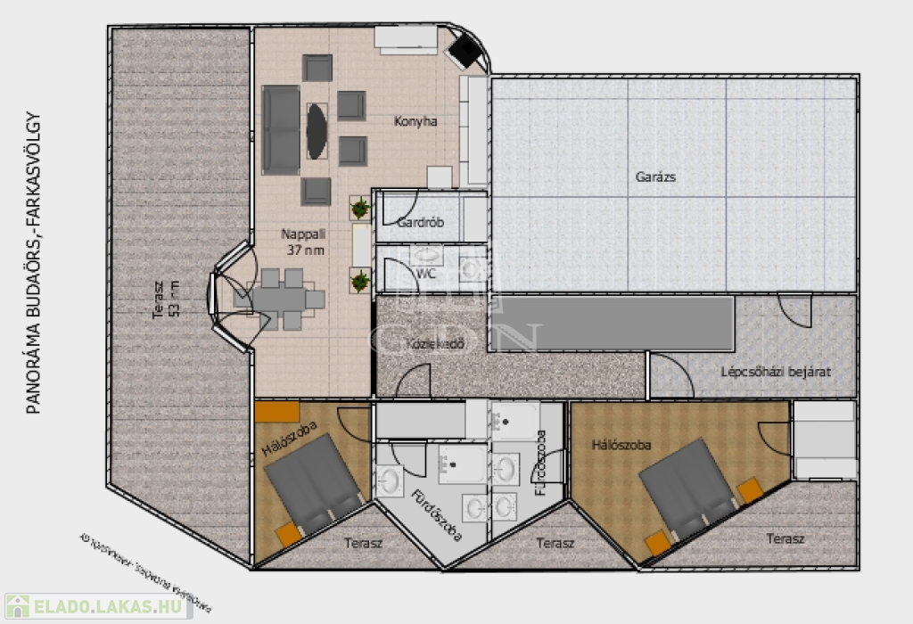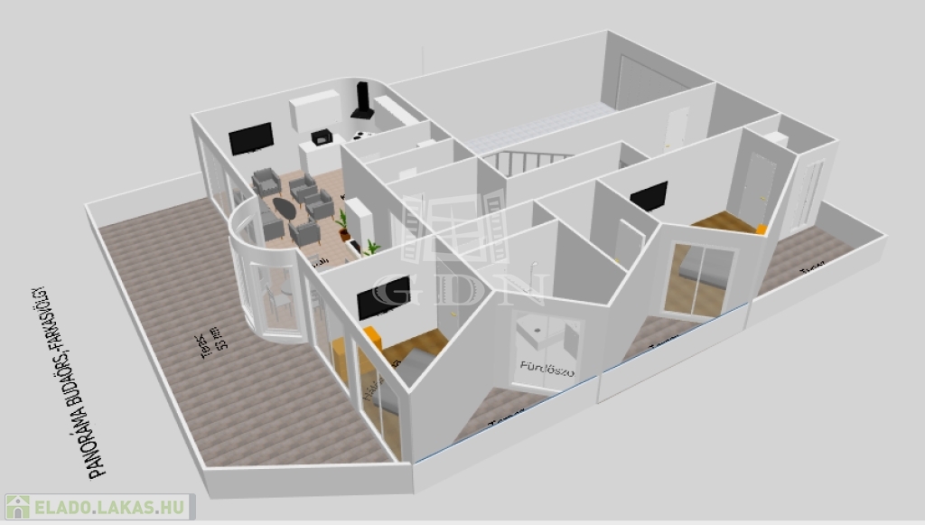 A luxus otthon a Budai oldal kiemelt részén a Farkasvölgy-Csillebérc városrészek ölelésében, csendes hegyvidéki környezetben, a tájvédelmi terület közelében helyezkedik el! A lakáshoz tartozó hatalmas méretű teraszról csodálatos panoráma nyílik a városra, valamint a Frank hegyre.