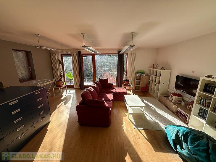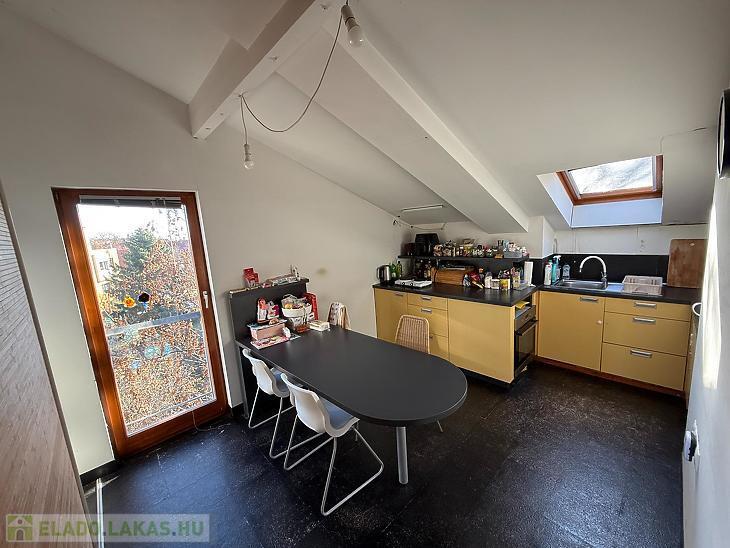 Eladásra kínálunk egy csendes, jó állapotú, 159 nm-es + 15 nm-es teraszos, belső kétszintes, világos, panorámás lakást Németvölgy frekventált részén, a Fürj utcában.