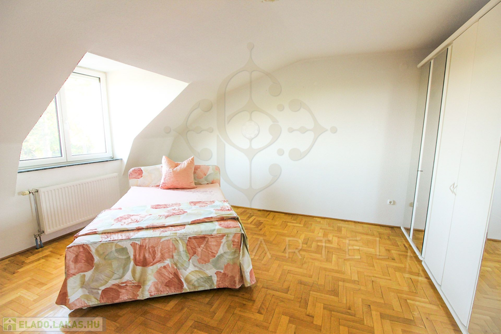 A XII. kerület egyik legzöldebb, legcsendesebb részén, Mártonhegyen eladó egy 163 nm-es, belső kétszintes, napfényes tégla lakás, amely ideális választás családoknak vagy azoknak, akik nyugalomra, térre és madárcsicsergésre vágynak, de nem mondanának le a város közelségéről sem.