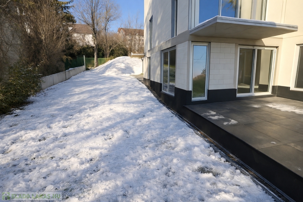 házban, ÚJÉPÍTÉSŰ FÖLDSZINTI, KERTKAPCSOLATOS lakás, saját kizárólagos 140 nm-es kerttel eladó!
