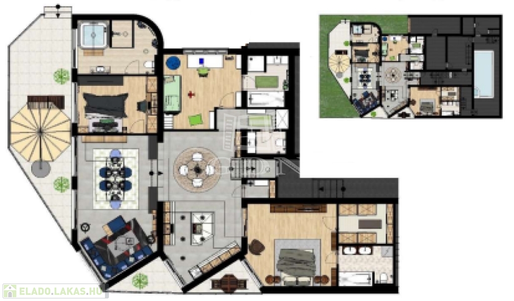 FIGYELEM, az épületben további 2 lakás lett kialakítva, melyek külön emeleten helyezkednek el.
