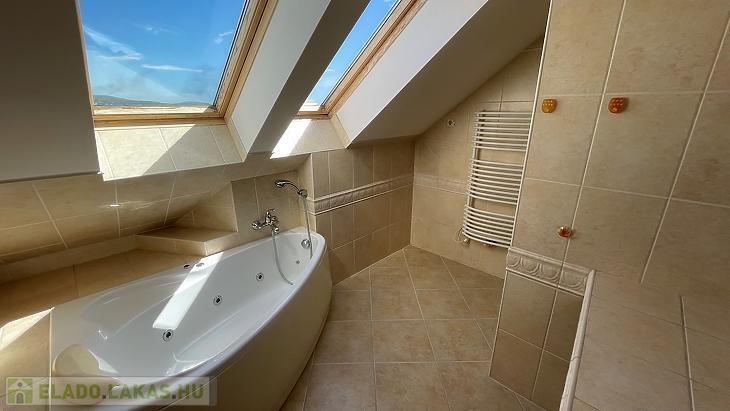 Az emeleti szinten 3 szeparált hálószoba, egy káddal és zuhanyzóval is felszerelt fürdőszoba, közlekedő, 2 terasz és egy franciaerkély lett kialakítva.