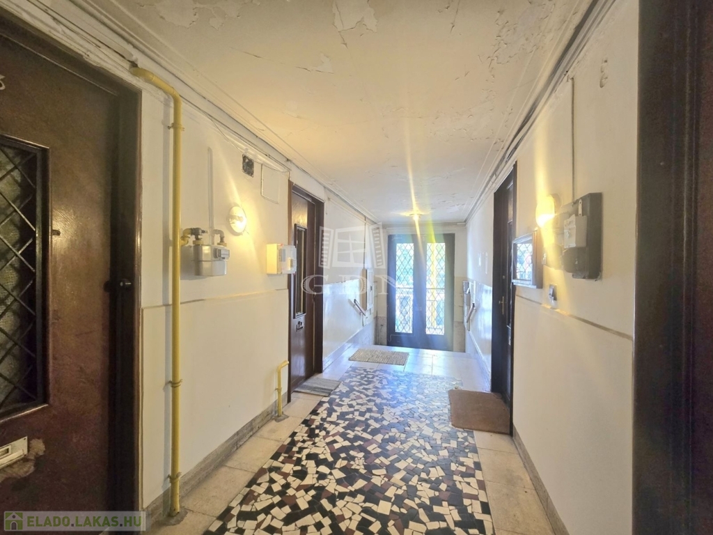A nappali-háló tágas és világos, utcai kilátással, a házközponti fűtés pedig lapradiátorokon keresztül biztosítja a kellemes meleget a téli hónapokban.