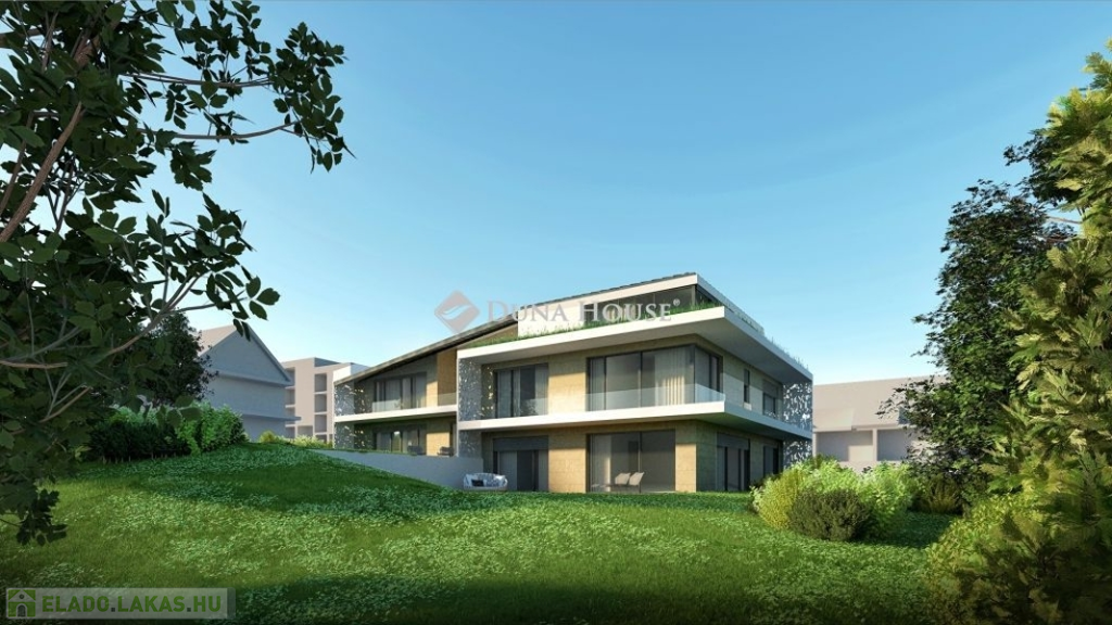 Megújuló energia, fűtő-hűtő rendszer, felső kategóriás anyaghasználat, nagy teraszok, élhető zöld terület.
