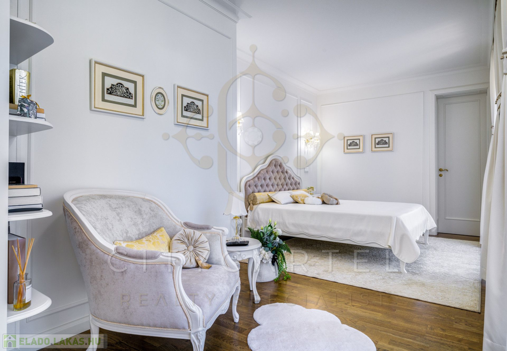 A lakás minden részletében a klasszikus francia elegancia és a modern luxus harmonikus ötvözete köszön vissza. A kifinomult belsőépítészeti tervezés a legmagasabb színvonalon valósult meg, olyan gondosan megválogatott anyagokkal és kiegészítőkkel, amelyek exkluzivitást és időtlen stílust sugároznak.