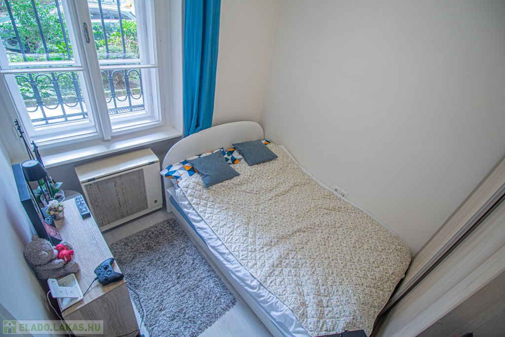 Eladó a XII. kerületben a Böszörményi úton, egy nagypolgári házban lévő 45nm-es, 1,5 szobás, remek beosztású, egyedi fűtéses lakás.