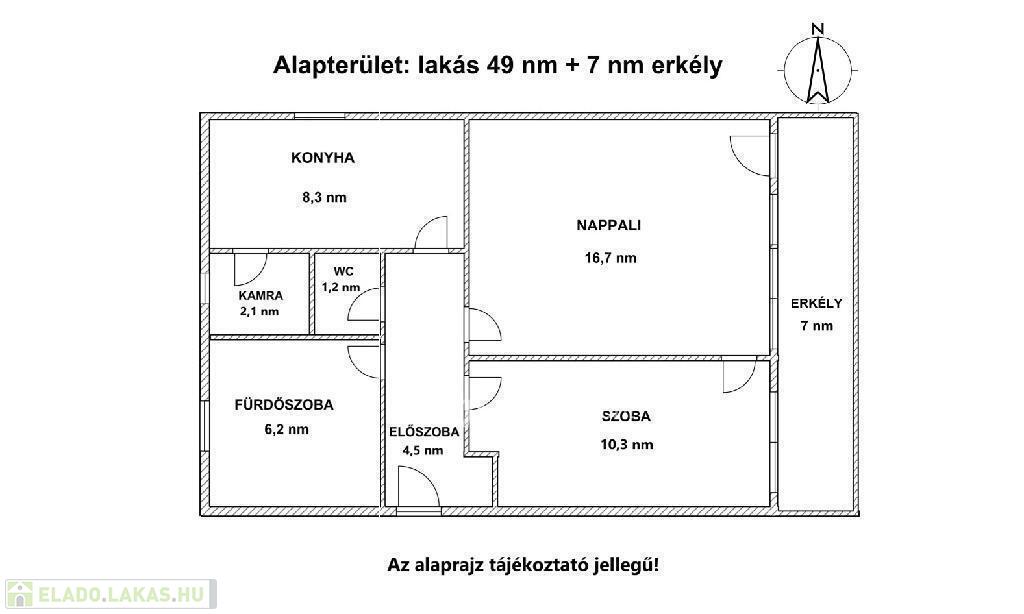 Nappali és egy félszoba, előszoba, fürdőszoba, külön WC, valamint konyha és kamra áll rendelkezésre a kiváló elrendezésű lakásban.