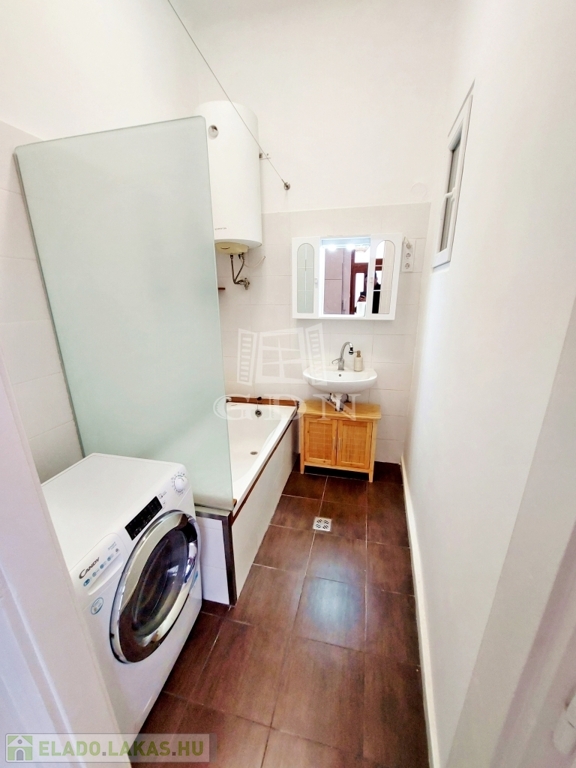 Az ingatlan praktikus elrendezésű: két szobával, kényelmes méretű étkezős konyhával, valamint kamrával rendelkezik. A fürdőszoba és a WC külön helyiségben kapott helyet, ami tovább növeli a lakás komfortját.