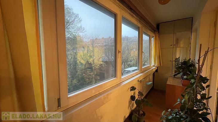 A dk-i fekvésű, kertre néző, 6 nm-es erkélyt a tulajdonos beépítette és hő és hangszigetelt üveggel szerelte fel.