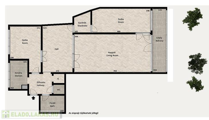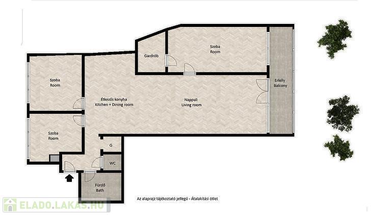 Az előszobából közelíthetjük meg az ablakos konyhát, a káddal szerelt fürdőszobát, a külön wc-t és a kamrát is Az lakás igény szerint könnyen nappali és három hálószobássá alakítható!