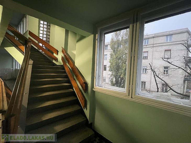 Az ingatlan az épület III. emeletén található, utcára és csendes hátsó kertre tekint dny-i és ék-i irányba.