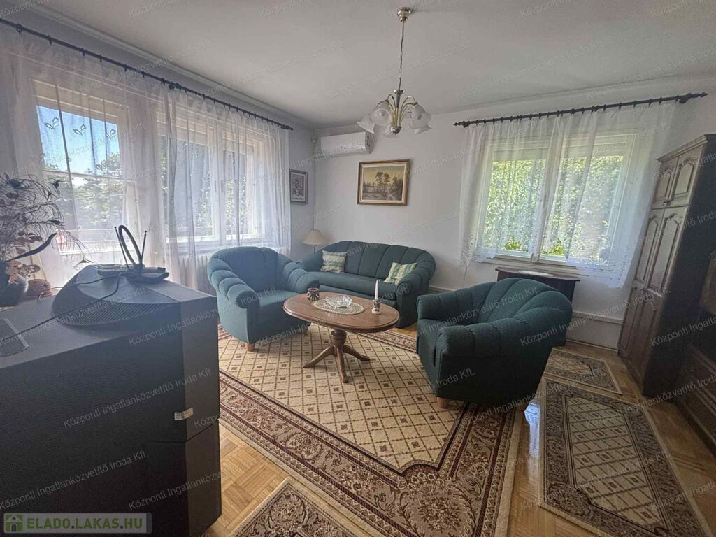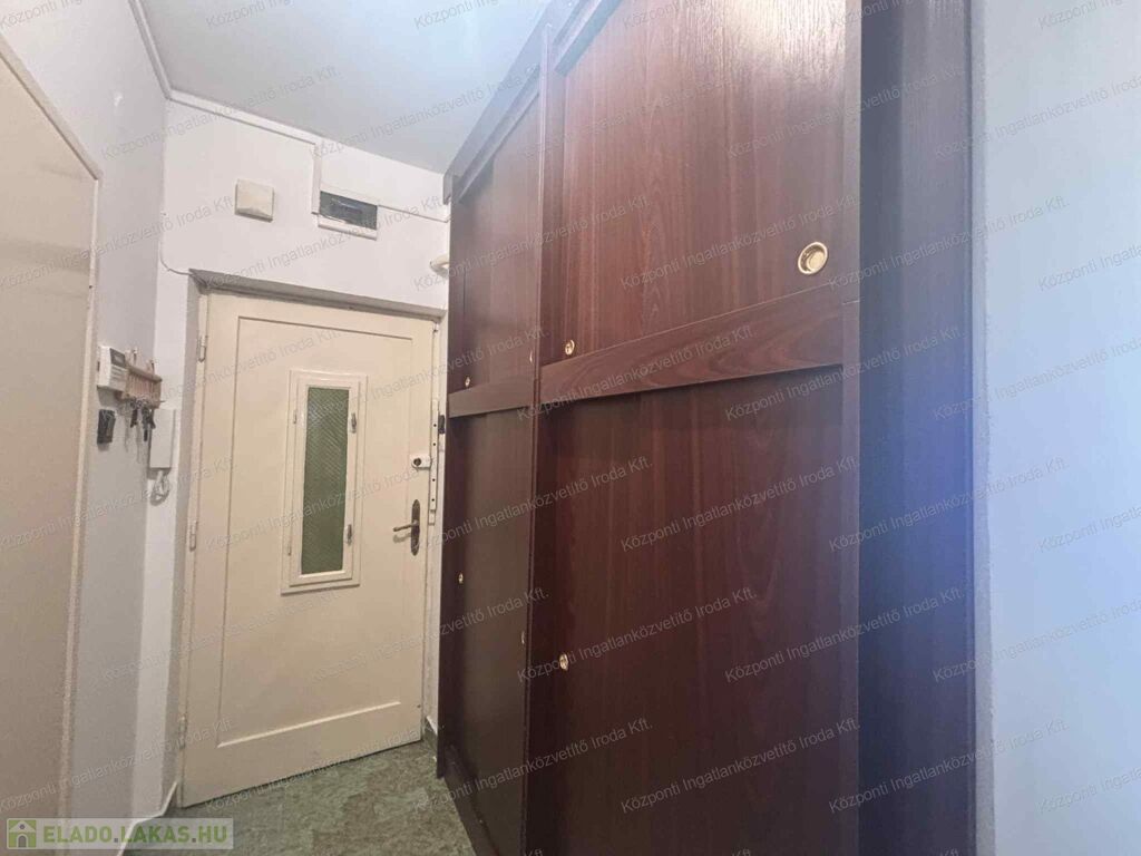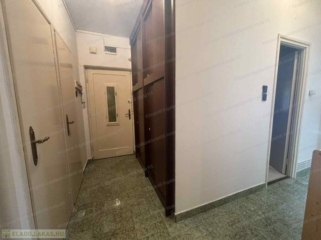 A Központi Ingatlanközvetítő Iroda kiemelt ajánlata, ez az 1. emeleti, 2 szobás, nagy erkélyes lakást egy rendezett, háromszintes, téglaépítésű társasházban. A lakás klimatizált, fűtését gázkonvektor biztosítja. Állapota átlagos, tehermentes, rövid időn belül birtokba vehető, így akár saját részre, akár befektetési célra is ideális választás lehet. A lakáshoz külön, zárható, 2 m²-es pincei tároló tartozik, valamint opcionálisan egy garázs is megvásárolható, amelynek ára 18 millió Ft.
