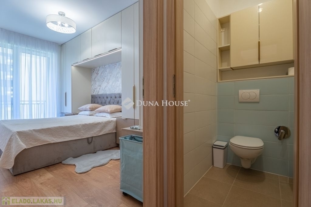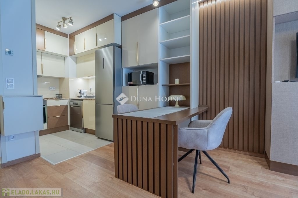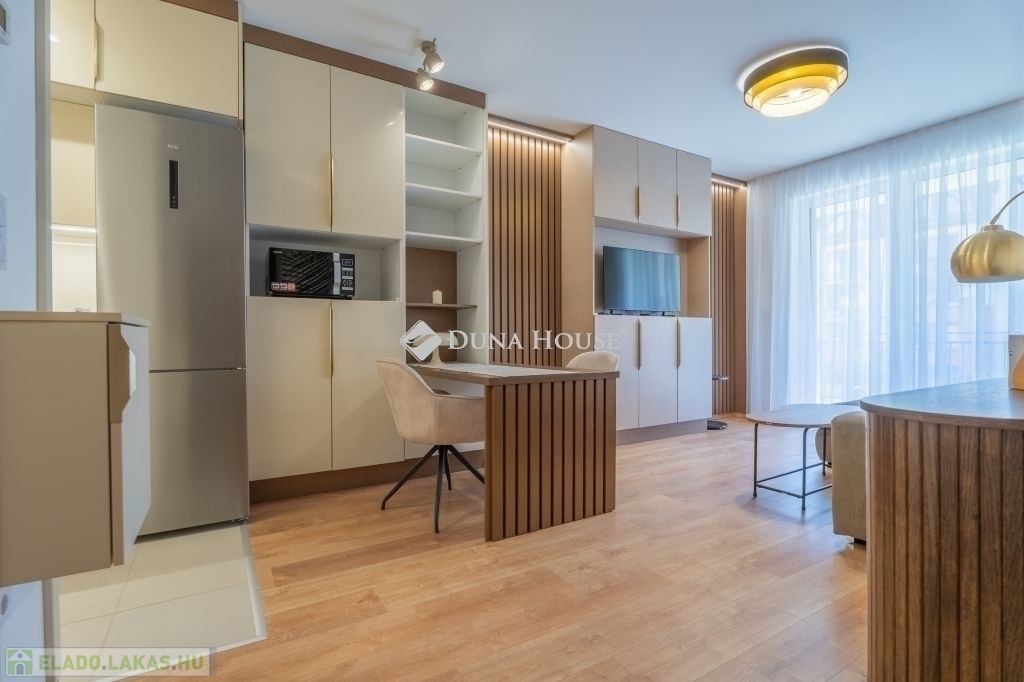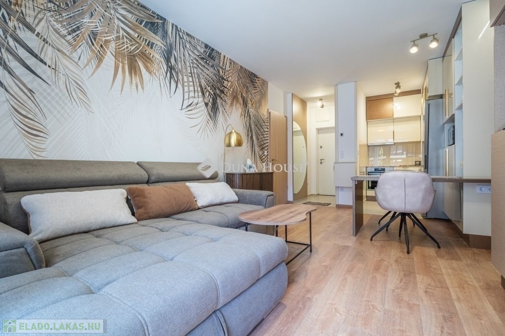 West Side Gardenben – stílusos, azonnal költözhető lakás a XIII. kerület szívében!A XIII. kerület legújabb lakóparkjában, a Big George által fejlesztett West Side Gardenben kínálok eladásra egy 1. emeleti, 45 m²-es, igényesen kialakított, ízléses otthont.A belső terek megkomponálását profi tervező végezte, ahol a meleg bézs árnyalatok, a minőségi burkolatok és a harmonikus anyaghasználat gondoskodnak az időtálló, elegáns hangulatról. Minden részlet a kényelmet és az esztétikát szolgálja.Főbb jellemzők:Világos, amerikai konyhás nappali, gépesített konyhával, gránit munkalappalÖsszehangolt belsőépítészeti koncepció, modern bútorzattalOkosotthon vezérlés, mennyezeti hűtés-fűtésHő- és hangszigetelt nyílászárók, elektromos redőnyök, szúnyoghálóTágas terasz, amely a csendes, parkosított belső kertre nézNagyobb méretű teremgarázs beálló és tároló a vételáron felül kötelezően megvásárolandó!A West Side Garden kiváló elhelyezkedéssel bír: a Váci út, Duna Pláza, metró, irodaházak és rekreációs lehetőségek egyaránt pár perces sétával elérhetők, miközben a zöld, belső udvar nyugodt életteret biztosít.Ideális választás azok számára, akik egy letisztult, modern otthonban képzelik el a mindennapjaikat – kompromisszumok nélkül.