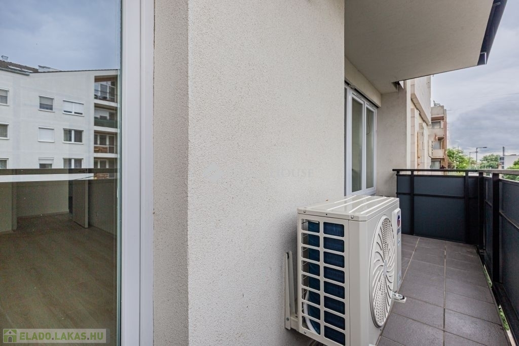 Eladó egy második emeleten található , nappali + 2 hálószobával rendelkező, klimatizált lakás 8nm erkéllyel.