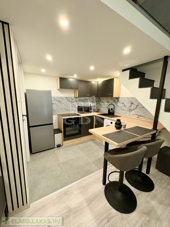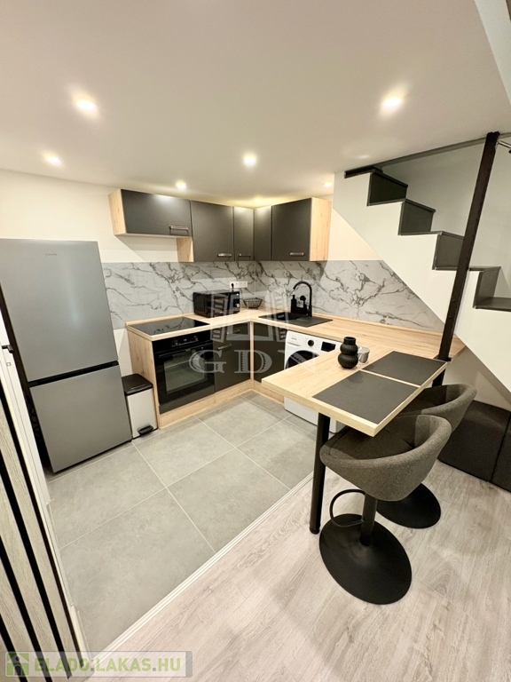 • „B” lakás: 32 m² + 11 m² galéria, teljes berendezéssel és gépesítéssel, azonnal hasznosítható formában.