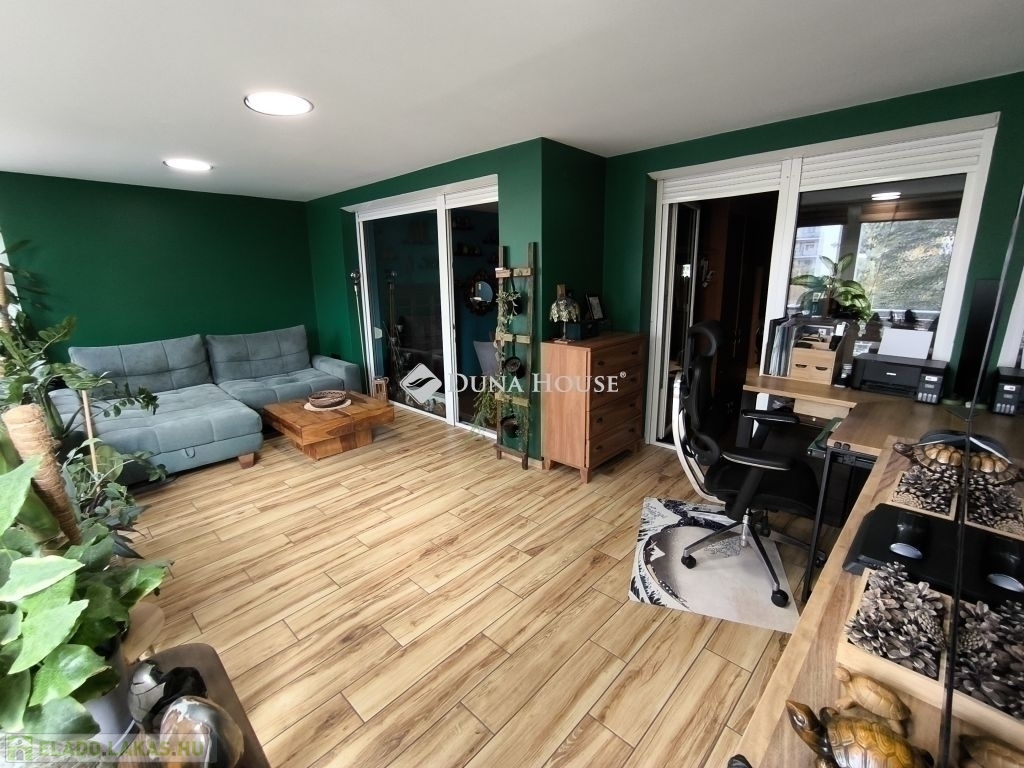 A XIII. kerület kedvelt, csendes részén, Angyalföldön kínálok megvételre egy 2009-ben épült, újszerű állapotú, liftes társasház 1. emeleti lakásátA lakás igazi kuriózumát a 24 m²-es, teljesen beépített és fűthető erkély adja, amely két éve lett kialakítva, és egész évben használható, teljes értékű élettérként funkcionál!!!A LAKÁS FŐBB ELŐNYEIEgyedülálló, fűthető, beépített erkély (24 m²)Szigetelt, prémium kerámia burkolattalElektromos padlófűtés termosztáttalPrémium pliszé szúnyoghálós tolóajtókHasználható: nappaliként, hálóként, dolgozószobaként, műteremként vagy télikertkéntA középső, teljesen elhúzható tolóajtóknak köszönhetően erkély funkcióját is megtartottaKiváló elrendezésKét külön nyíló szobaAmerikai konyhás nappaliFürdőszoba + külön WCGépesített, újszerű konyhaÚj beépített sütőMosogatógépSok praktikus beépített tároló (előszoba, háló, konyha, fürdő)Modern fűtési rendszer, alacsony rezsiJunkers gázkazán + elektromos padlófűtés kombinációjaKiemelkedő hőszigetelésKözös költség: 15.000 FtMaximálisra bővített elektromos hálózat3×32 A teljesítményGond nélkül működik egyszerre több nagy fogyasztóExtra felszereltségNégy ponton záródó biztonsági, tűzálló bejárati ajtóElőkészített riasztórendszerKábelcsatorna a nappaliban internet/HDMI számáraTeraszra kiépített, akár 10 GB/s sebességű internetkábelKÖRNYÉKnyugalom és infrastruktúra egyszerreCsendes, fás utcafront, zöldre néző ablakokÓvoda, iskola, bölcsőde a ház utcájábanTöbb játszótér, Spar, Tesco, Penny, Aldi, pékség, gyógyszertár, éttermek a közelbenBuszmegálló 1 perc sétára (150 m) Belváros 15 percRákos-patak: futópálya, sétány, kutyafuttató, kiváló szabadidős lehetőségekPARKOLÁSA társasház alatti mélygarázsban lévő parkolóhely külön megvásárolható.