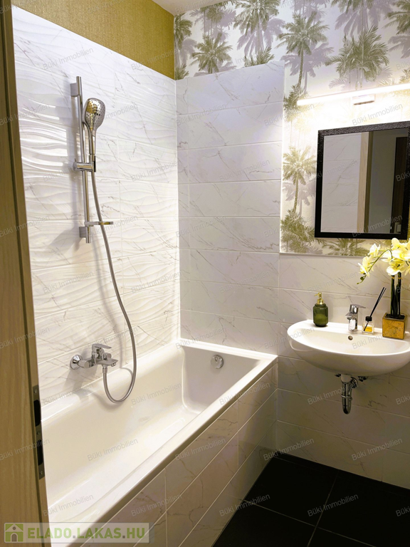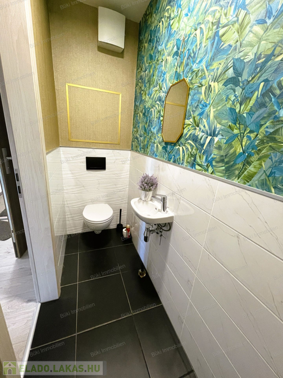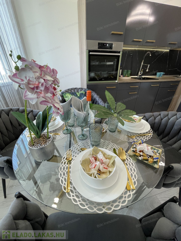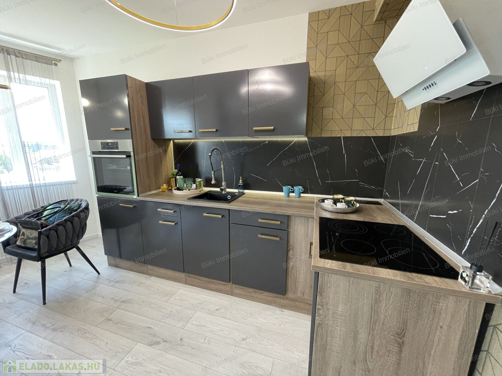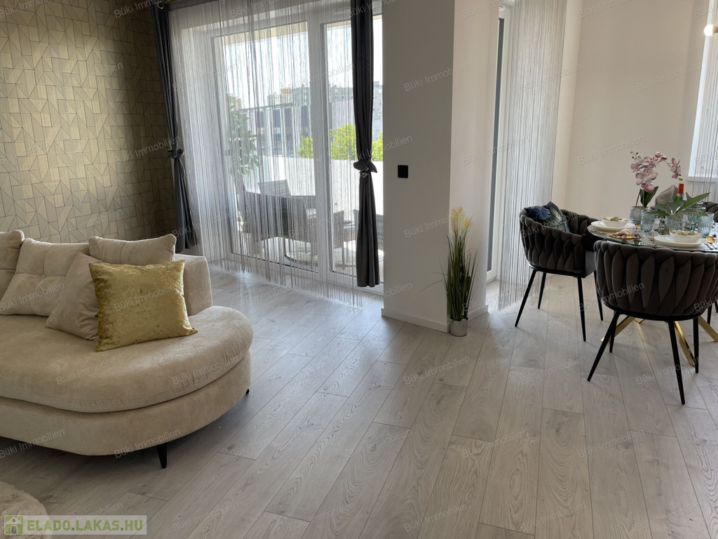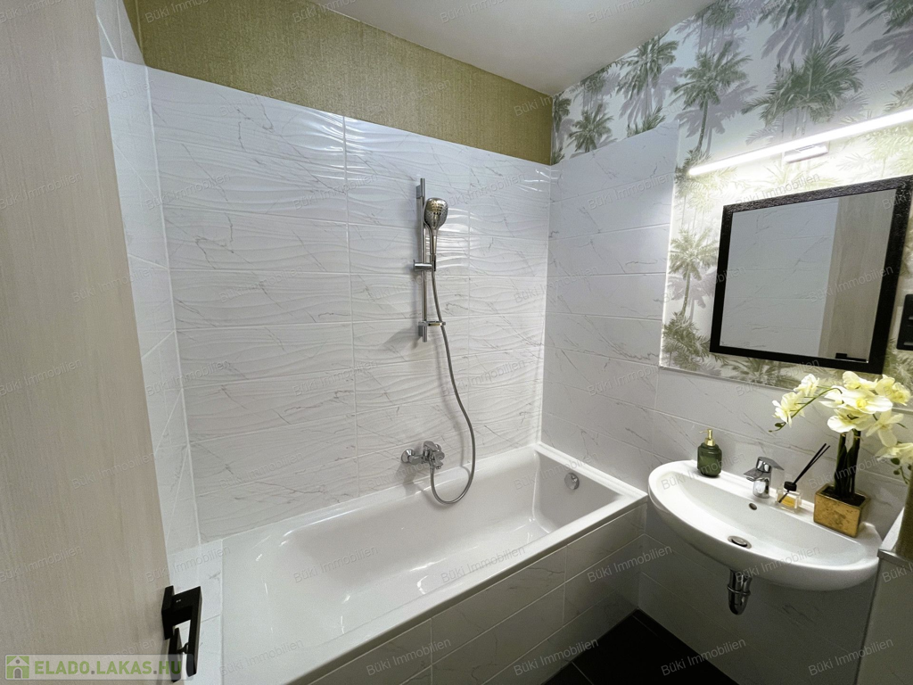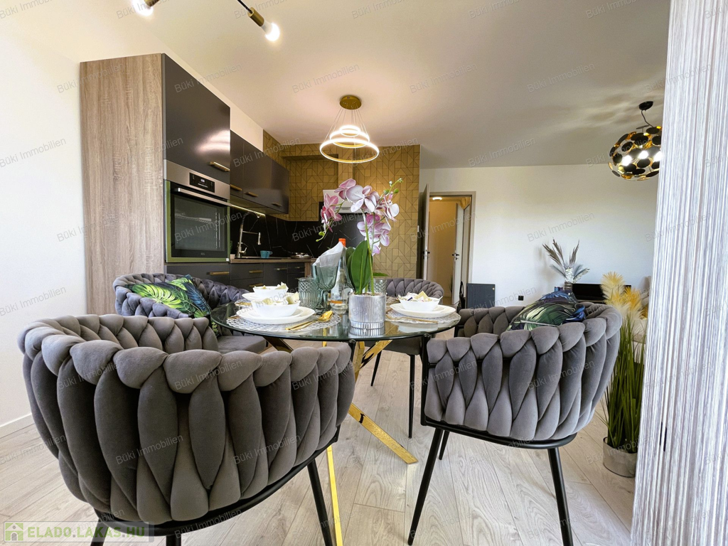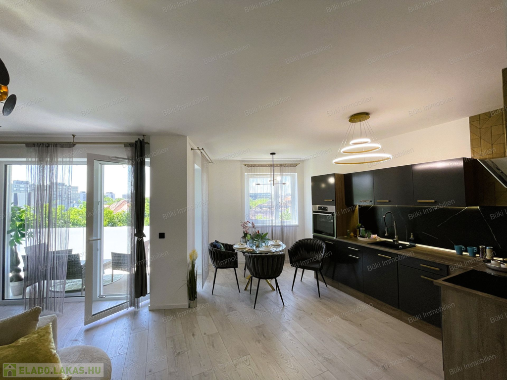 Itt van minden, ami csak egy igényes embernek kellhet a mindennapokhoz. Belsőépítész által tervezve, megalkotva, a legapróbb részletekre is ügyelve. Színvilágával elkápráztat, miközben az erkélyől a várost lehet csodálni, több szögből is. A bútorok egyedien lettek összeválogatva, a hideg és meleg színárnyalatokkal játszva, egy valódi alkotás. Ide már csak egy kulcsot, kistáskát kell hozni, és kezdőthet is egy új életszínvonal. Bárki, akit ide áthív az ember kávézni, borkóstolóra, vagy Netflixezni, biztosan elismerőleg fog szólni. A hatalmas erkélyen tavasztól mehet a teázás croissanttal, kis narancsdzsemmel és egy kis friss grapefruittal. Az erkély sarkon van, így a szívonalas zavartalan esti elmélkedés, esetleg a következő Nobel-díjas találmány megalkotása teljesen lehetséges, csak is a madarak lesznek jelen, mint hangulatfokozó természetes nyugatók. Wc és fürdő külön, így ha nagyobb társaság jönne össze, a házigazda zavartalanul mosakodhat, ha esetlegesen foglalt a wc.