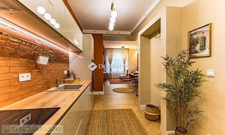 . A lakás tulajdoni lap szerint 92 nm melyet két lakássá bontottak, ennek eredménye, egy közel 75 nm, és egy 18 nm alapterületű lakás került kialakításra. Jelen hirdetésben szereplő 75 nm lakrészt kínáljuk eladásra.A lakást, a mostani tulajdonos az alapokig visszabontotta, és minden elemében megújította. Ennek köszönhetően, két hálószoba és tágas nappali került kialakításra.A terekre jellemző, hogy a mind a fő mind a második hálószoba is közel 15 nm; a fő hálószobából leválasztottak egy Gardrobe helyiséget. A nappali tágas világos, magában foglalja az étkezőt is, a konyha a tágas közlekedő részen kapott helyet, ahonnan a Fürdő és az udvari tájolású hálószoba is megközelíthető.A felújítás során magas minőségű anyagok kerültek beépítésre, mind a szaniterek, mind a nyílászárók tükrözik azt az igényességet, amelyet a Home Staging során kiválasztott bútorok és berendezési tárgyak egészítenek ki és teszik harmonikus otthonná. A lakás teljes bútorzattal, és berendezési tárgyakkal együtt megvásárolható.A házban a rövidtávú kiadást mostani tudásunk szerint a ház nem engedélyezi, a kisebbik lakrész jelen pillanatban is ki van adva hosszú távra. Igény esetén az is megvásárolható, külön megállapodás alapján.Jöjjön el nézze meg.
