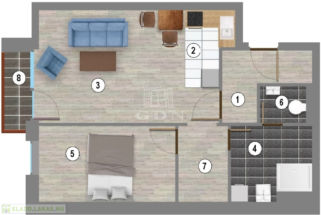 • 4. em.: 2 db lakás