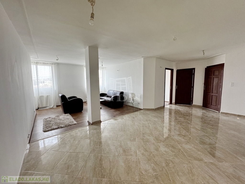 A lakás a legfelső emelet található. Használható két kisebb külön lakásként, vagy akár egyben is. Egyben használva két fürdőszoba, két tágas erkély, 4 szoba, óriási amerikai konyhás nappali, és egy különleges, panorámás 25 nm-es tetőterasz, várja leendő tulajdonosát.