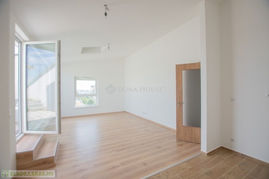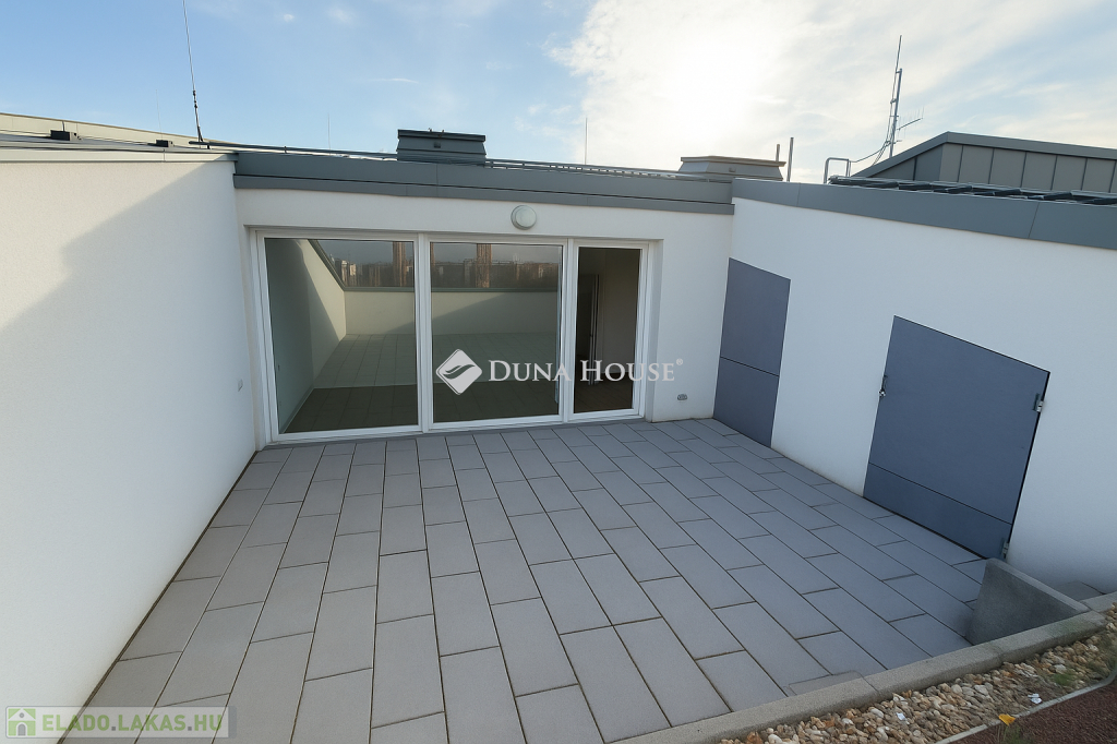 legfelső emeleti lakás 13. kerület Vizafogón, a Duna-part közvetlen közelében. Az ingatlan 71 m²-es, nappali + amerikai konyhás elrendezésű, két külön nyíló szobával rendelkezik. A lakás legnagyobb különlegessége a 36 m²-es, két szintre tagolt, részben térkövezett, részben füvesített terasz, amely ideális pihenésre, vendégfogadásra vagy akár kerti sütögetésekhez. A teraszról kilátás nyílik a Dunára, ami még különlegesebbé teszi az ingatlant. Az otthon világos, tágas, egyedi elrendezésű, nem tipikus alaprajzú lakás, ami valódi ritkaságnak számít az új építésű kínálatban. A lakáshoz két kerti tároló is tartozik, illetve néhány kisebb befejezés az új tulajdonos ízlésére van bízva például a konyhabútor beépítése is még hátravan, így az teljes mértékben személyre szabható. Az ingatlanhoz teremgarázs beállóhely is vásárolható opcionálisan, + 9 millió forintért. Lokáció minden egy karnyújtásnyira! Dagály fürdő, Duna-part, parkosított sétányok pár perc sétára M3 metró, 1-es villamos, tömegközlekedés kiváló A környék újépítésű, rendezett, családbarát, mégis közel a belvároshoz Iskolák, óvodák, boltok, éttermek minden a közelben.Ha egy különleges hangulatú lakásra vágyik nagy terasszal és dunai kilátással Budapest egyik legdinamikusabban fejlődő részén, akkor ezt látni kell!
