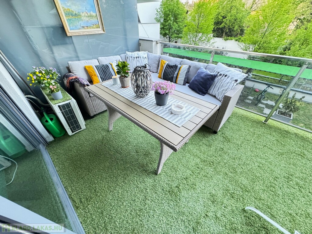 Méret és elrendezés: tágas, 69 m² alapterület. Az amerikai konyhás nappali tökéletes tér az egész család számára, innen nyílik egy hálószoba, hatalmas erkély, fürdőszoba és külön mellékhelyiség. A második hálószoba pedig folyosóról nyílik. Az ingatlanban kettő fürdőszoba van, az egyik folyosóról, a másik a hálószobából nyílik. Tökéletes elrendezés!