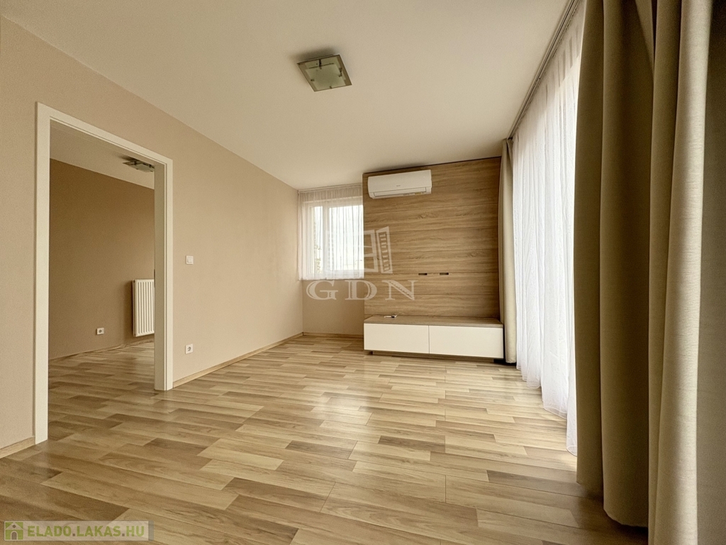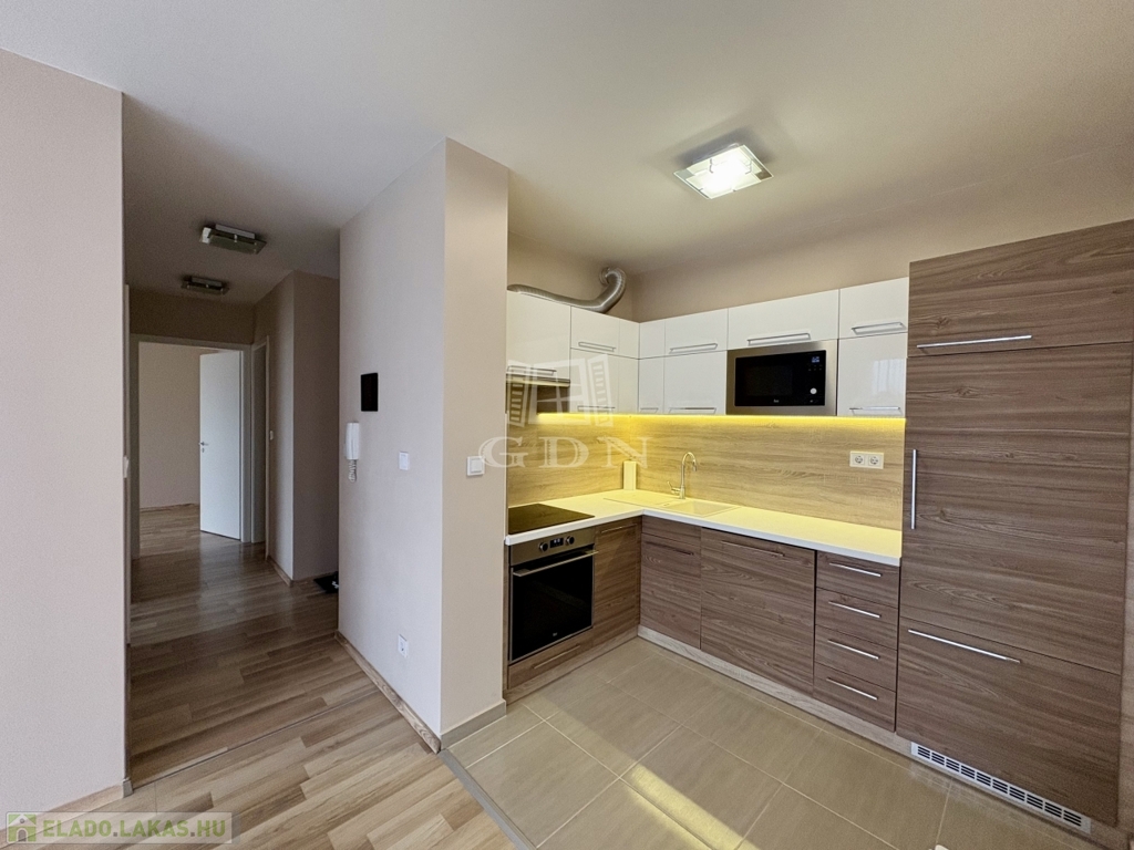 A jól átgondolt alaprajznak köszönhetően az amerikai konyhás nappali mellett három külön nyíló szoba, két fürdőszoba és praktikus tárolóterek szolgálják a kényelmet. A lakás előtt nincs magas beépítés, így a kilátás egy zöld, fás parkra nyílik, a helyiségek pedig egész nap napfényesek és csendesek.