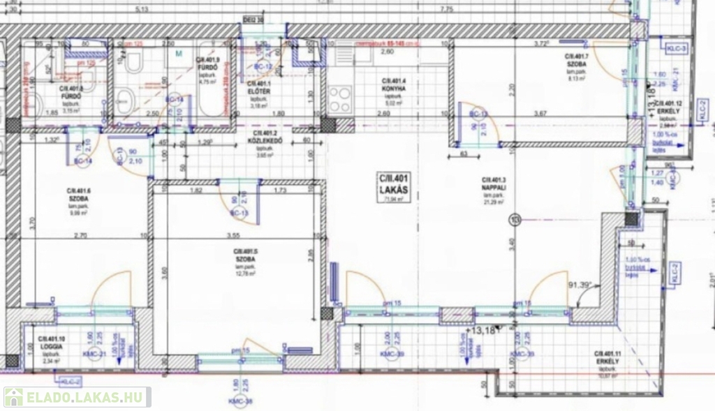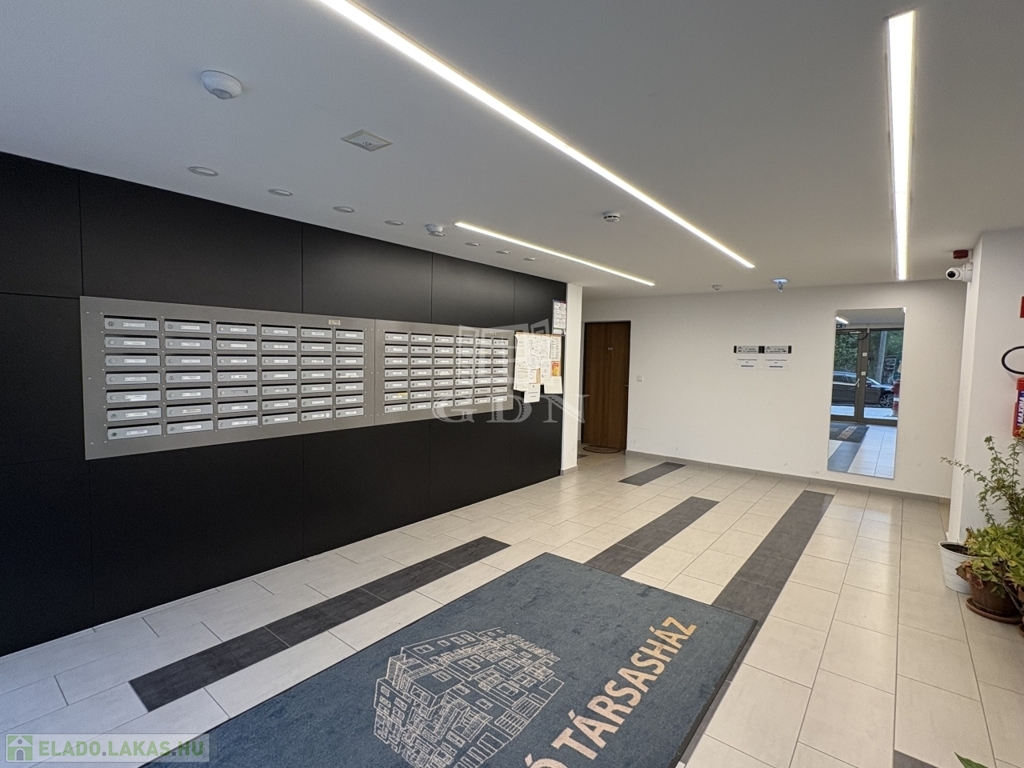 A lakás a 4. emeleten található egy 5 szintes társasházban, és összesen három terasz kapcsolódik hozzá, együtt 16 m² alapterülettel.