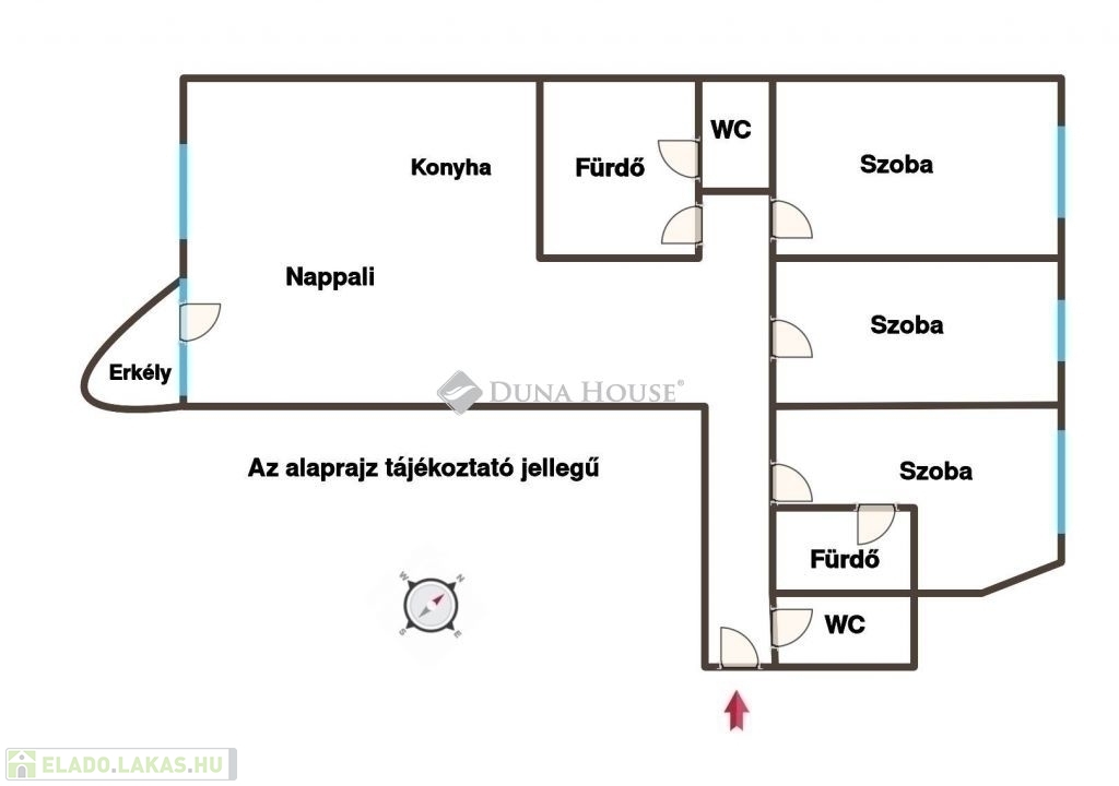 2 fürdőszoba (egyik kádas és zuhanyzós, WC-vel; másik zuhanyzós, WC-vel)