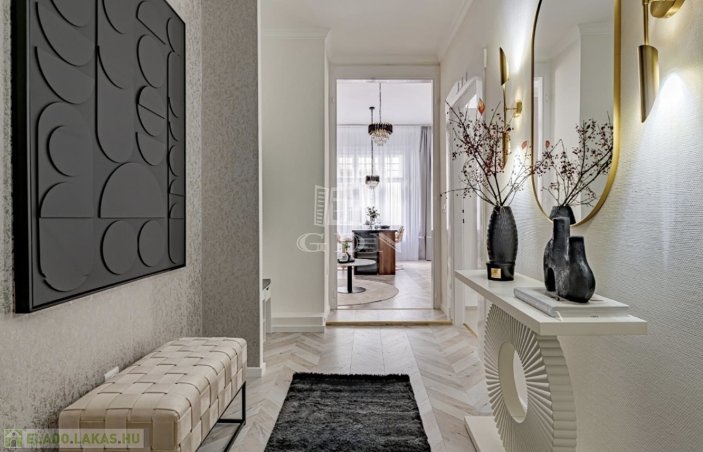 A világos, nagy belmagasságú terek (3,6 m), a stílusos lakberendezői megoldások mind hozzájárulnak ahhoz, hogy ez a lakás igazán különleges legyen. A minőségi burkolatok, az exkluzív Roberto Cavalli tapéta, a kifinomult világítástechnika és a korszerű konyhai gépek a legmagasabb igényeket is kielégítik.