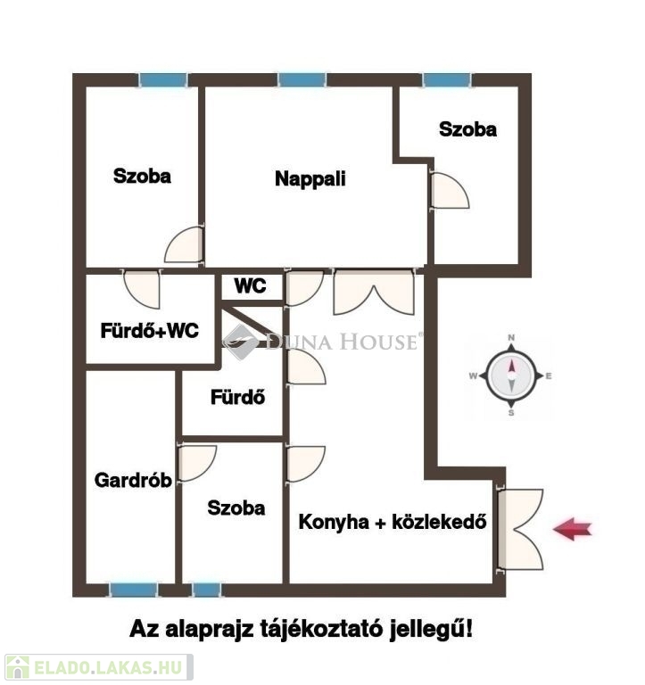 A lakás elosztása kiváló - a tágas, világos szobák és a praktikus fél szoba ideális választás nagyobb családoknak vagy akár irodai, rendelői hasznosításra is.
