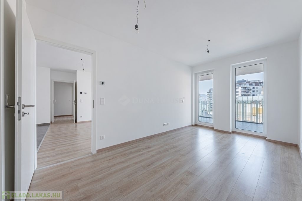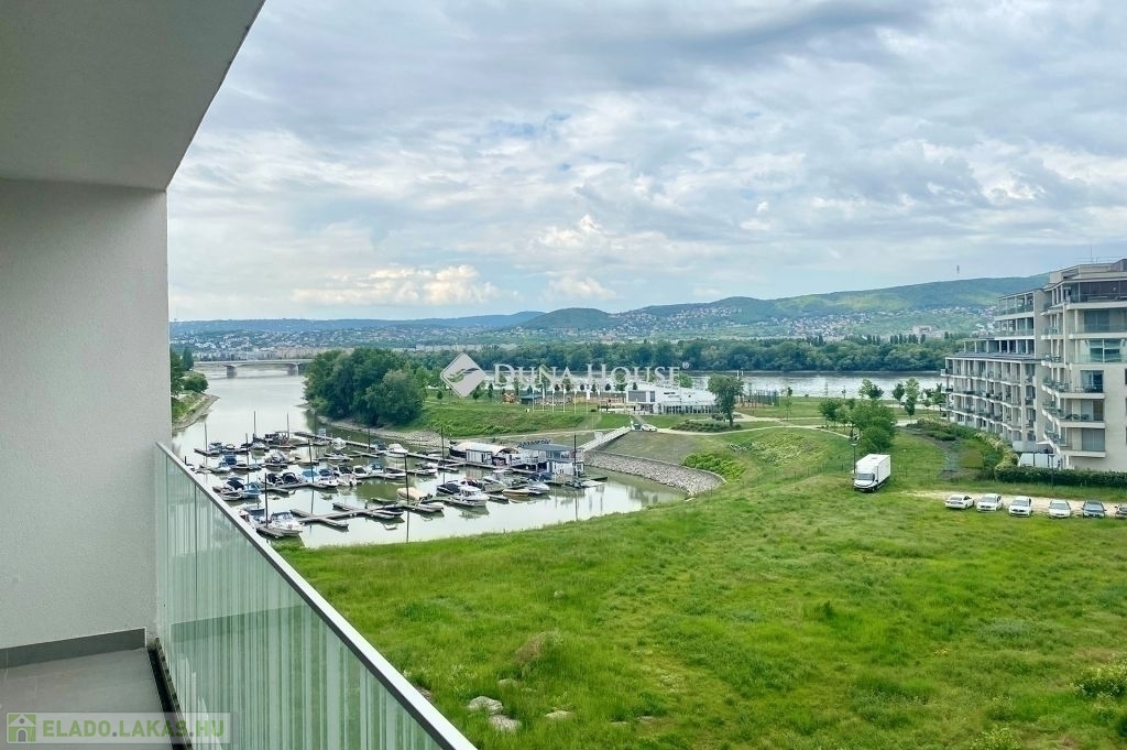 Eladó a 13. kerületben a Marina Parton, egy 77 m2 +27m2-es, 5. emeleti, 4 szobás, Ny-i tájolású, csendes sétányra néző, napfényes lakás.A lakás magas építési minőséggel készült, az energetikailag korszerű mennyezeti-hűtés fűtés kellemes hőérzetet biztosít majd.A lakóparkban kétszintes mélygarázs épült, melyben e-töltővel előkészített parkolóhelyek és tárolók kerültek kialakításra.A társasházban: Recepció szintű portaszolgálat, és csomagpont található.A közösségi életről pedig a közösségi tetőteraszok (jóga + napozó és grillterasz) a játszóterek és a lakók számára használható sporteszközök gondoskodnak.A környék:Képzeld el, hogy a nap végén a lenyűgöző Duna-parton ülve nézed naplementét! A helyszín garantálja, hogy mindennapjaid része lesz a folyó, a sétány és a kikötő.Pár lépésre a Duna part, de számtalan szórakozási és sportolási lehetőséget talál ebben az exkluzív környezetben: Marina sétányon játszóterek, kültéri edzőterem, teniszpálya igényes éttermek, kávézók, élelmiszerbolt, jacht kikötők, kondi termek, medencék, futó pálya.Frekventáltságát tekintve 5 percre a 3-as metró, buszok, kerékpárút szinte a ház előtt, a kikötő kb. 100 méter, így akár autóval, biciklivel, metróval vagy akár hajóval is elérheti a belvárost.Befektetés:A Duna-parti lakások igen kedveltek a befektetők körében, nem ok nélkül. A korlátozottan rendelkezésre álló, Duna menti telkeken épült ingatlanok azon felül, hogy értékállóak minden évben jelentősen növekszik az értékük, illetve gyorsan és egyszerűen bérbe lehet adni, így akár kiemelkedő hozamot biztosítanak tulajdonosaiknak.Ha Ön családjával egy nyugodt, biztonságos, tiszta levegőjű, kényelmes otthont keres, vagy akár egy jó befektetés.