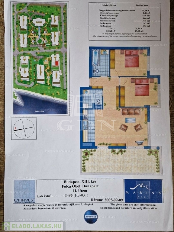 Az ingatlan pár lépésre van csupán a Duna parttól, elosztása kiváló, tájolása délnyugati