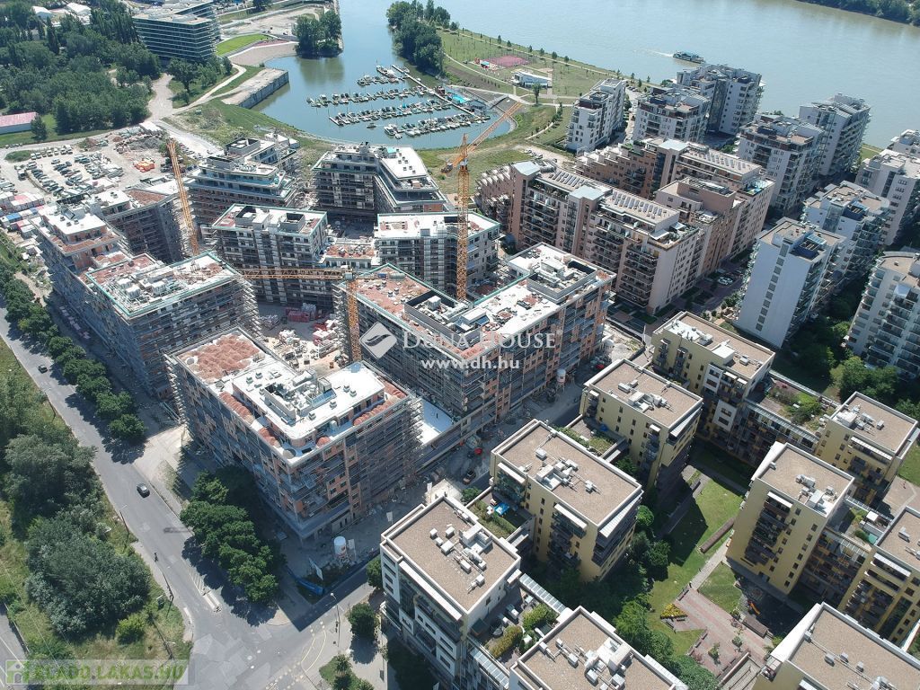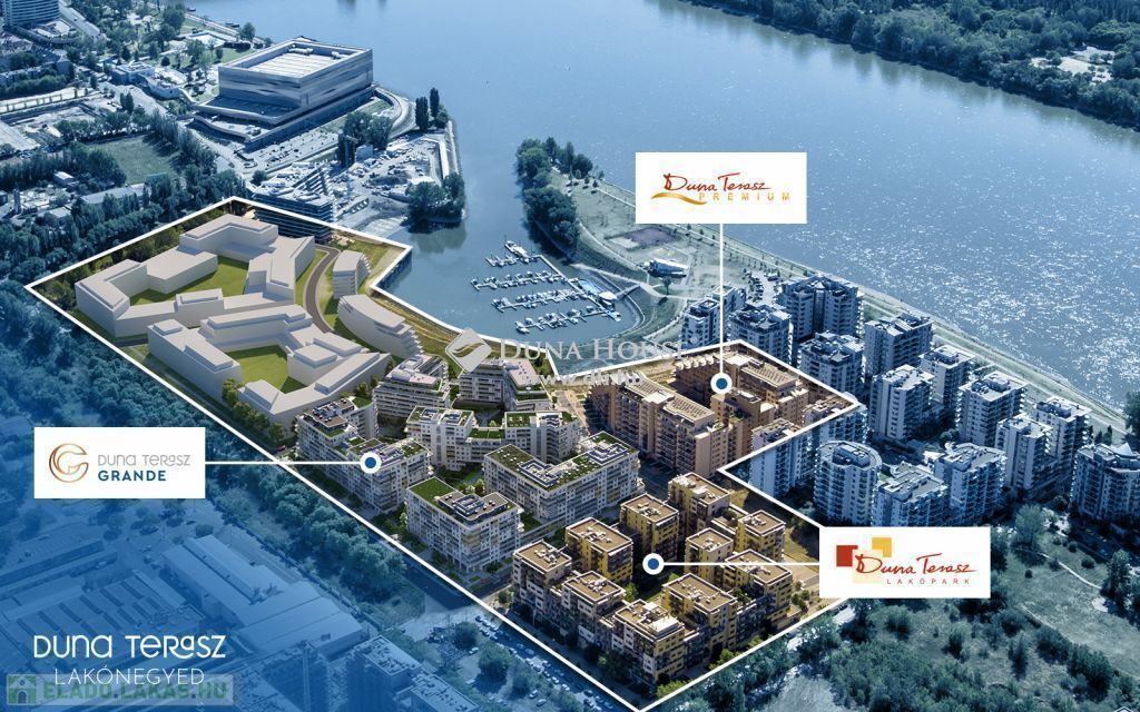 Eladó a 13. kerületben a Marina Parton, a most épülő Duna Terasz Grande-ban egy 87m2+ 113m2-es, 3. emeleti, 4 szobás, NY-i tájolású lakás. Az ingatlan Dunai Panorámás, illetve rendelkezik egy hatalmas terasszal és saját kertel.Okos-otthon megoldások, és mennyezet hűtés-fűtés gondoskodik a gazdaságos üzemeltetésről.A társasházban: Recepció szintű portaszolgálat, és csomagpont található.A közösségi életről pedig a közösségi tetőteraszok (jóga + napozó és grillterasz) a játszóterek és a lakók számára használható sporteszközök gondoskodnak.A környék:A Duna Terasz Grande olyan lenyűgöző adottságokkal rendelkező helyszínre épül, amelyből városszerte kevés létezik. A XIII. kerületi Vizafogó városrész állandóan fejlődő, megújuló, új-építésű házakkal övezett lakóövezete egyedi életmódot biztosít a lakóinak.Képzeld el, hogy a nap végén a lenyűgöző Duna-parton ülve nézed naplementét! A helyszín garantálja, hogy mindennapjaid része lesz a folyó, a sétány és a kikötő.Pár lépésre a Duna part, de számtalan szórakozási és sportolási lehetőséget talál ebben az exkluzív környezetben: Marina sétányon játszóterek, kültéri edzőterem, teniszpálya igényes éttermek, kávézók, élelmiszerbolt, jacht kikötők, kondi termek, medencék, futó pálya.Frekventáltságát tekintve 5 percre a 3-as metró, buszok, kerékpárút szinte a ház előtt, a kikötő kb. 100 méter, így akár autóval, biciklivel, metróval vagy akár hajóval is elérheti a belvárost.Befektetés:A Duna-parti lakások igen kedveltek a befektetők körében, nem ok nélkül. A korlátozottan rendelkezésre álló, Duna menti telkeken épült ingatlanok azon felül, hogy értékállóak minden évben jelentősen növekszik az értékük, illetve gyorsan és egyszerűen bérbe lehet adni, így akár kiemelkedő hozamot biztosítanak tulajdonosaiknak.Ha Ön családjával egy nyugodt, biztonságos, tiszta levegőjű, kényelmes otthont keres, vagy akár egy jó befektetést .