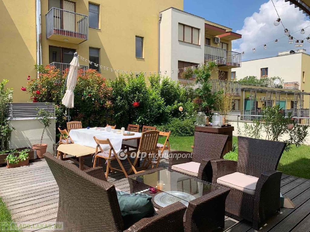 Ez a 71 m2-es, 5. emeleti lakás nemcsak otthon, hanem életérzés is. A nappaliból és a nagyobbik hálószobából közvetlenül kiléphet a 104 nm-es zöld tetőkertbe, ahol bokrok, fű és virágok között élvezheti a nyugalmat, vagy egy baráti beszélgetést. Ez az intim, saját kis oázis teljesen egyedivé teszi az ingatlant ? olyan élményt ad, amit a legtöbb városi lakás soha nem nyújthat.