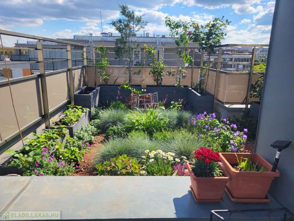 – Összesen 50 m²-es, két részből álló saját tetőkert