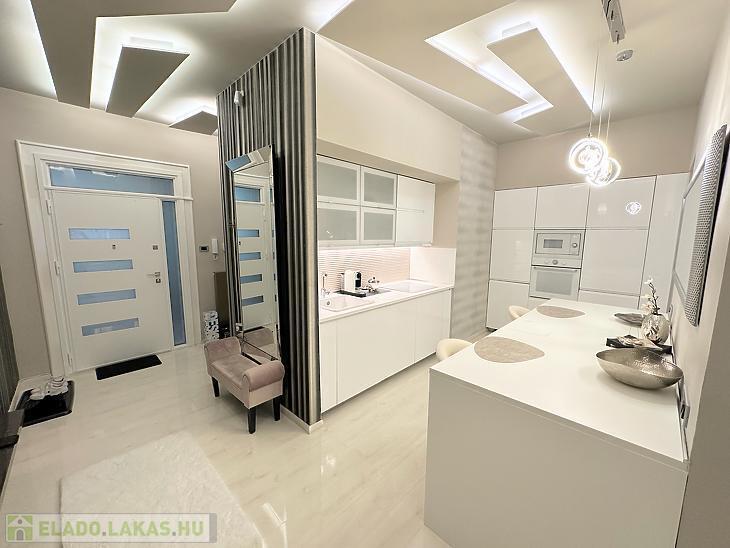 Keleti–nyugati tájolásának köszönhetően egész nap rendkívül világos, napfényes terekkel rendelkezik. A modern, beépített bútorok és gépesítés a vételár részét képezik, így az ingatlan azonnal költözhető. A praktikus gardróbszoba tovább növeli a komfortérzetet.