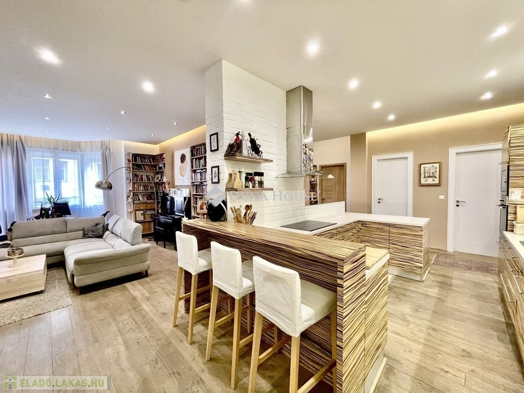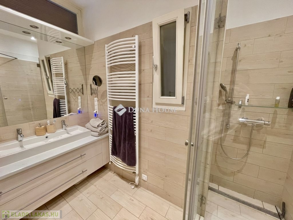 10 éve teljeskörű felújításon esett át, modernizálták a nyilászárókat, minden szobát klimatizáltak és távfelügyeleti riasztóval láttak el. Az újragondolt alaprajzon összesen 5db beépített szerkrényekkel is felszerelt hálószobával, 2 fürdőszobával, vendég wc-vel, valamint egy hatalmas amerikai konyhás nappali, étkező került kialakításra. A tájolásnak köszönhetően egész nap világos. Két hálószoba a csendes, a parkosított belső udvarra néz, míg a többi szoba utcai kilátást biztosít. 2db gardrób 1db kamra helyiség került még kialakításra, a három erkély összesen 12 négyzetméter, valamint hozzátartozik 4 m2-es alagsori, zárható tároló is.